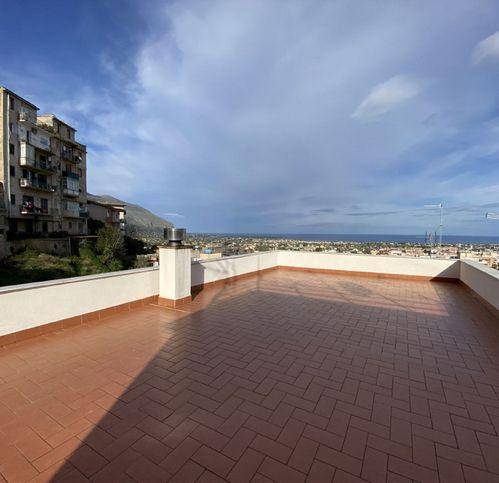 Rif. 1339 - Immobiliare Conigliaro propone in vendita: Carini, Corso Italia (Alto), Appartamento 4 piano di mq 140 circa con lastrico solare soprastante di pertinenza esclusiva. L'appartamento e cosi composto, ampio ingresso, soggiorno/cucina con camino, ampio salone, camera, cameretta, servizio con vasca, ripostiglio, balconi, tripla esposizione, no ascensore. Classe energetica APE G, info: 3286434602.