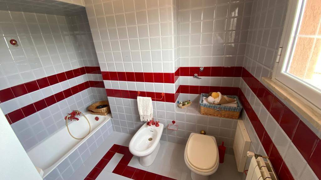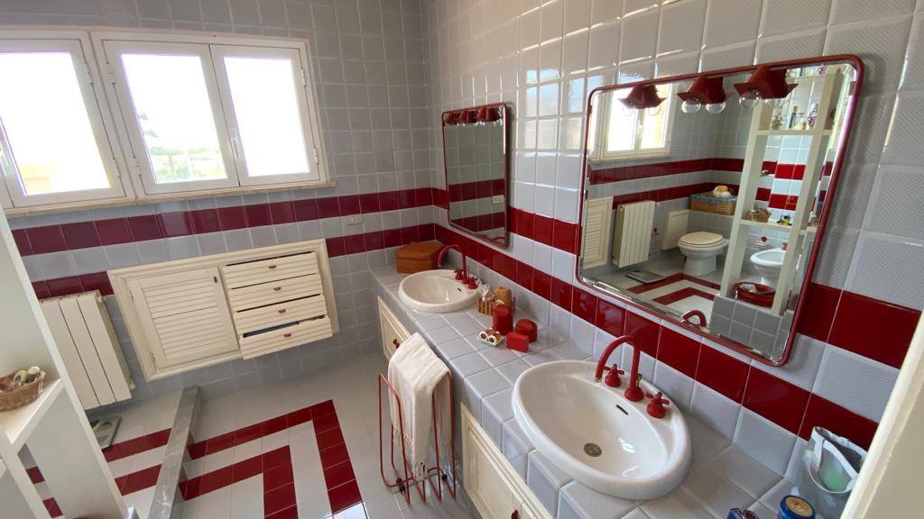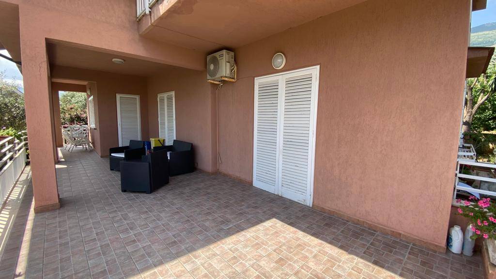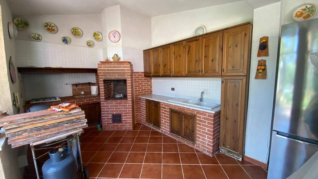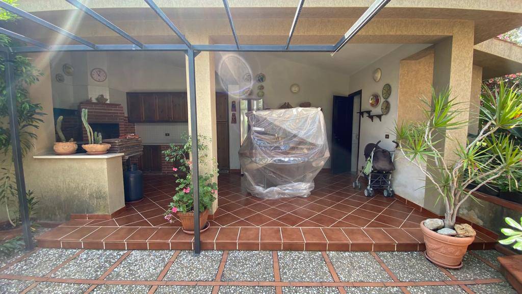 La villa è così composta: piano terra (seminterrato locale di sgombero, unico ambiente di mq 80 circa, cucina, servizio, terrazzo retrostante, Piano rialzato: ingresso su salone triplo, cucina, camera, servizio con doccia, ampi portici; Piano primo: disimpegno, quattro camere, servizio, balconi. Al piano terra troviamo un portico con cucina esterna e servizio. Classe energetica APE "G"; info: 0918675239 - wsp3286434602.